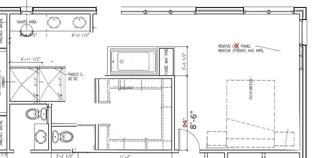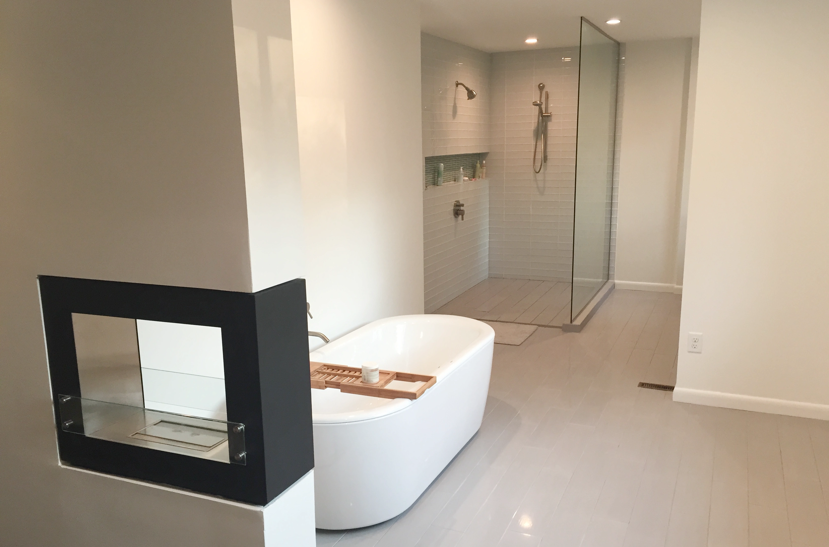 Below: The homeowners and architect were able to leverage the extremely large master bedroom footprint and update it for modern living. The boxy compartmented rooms where re-imagined for a more functional and up to date master suite: