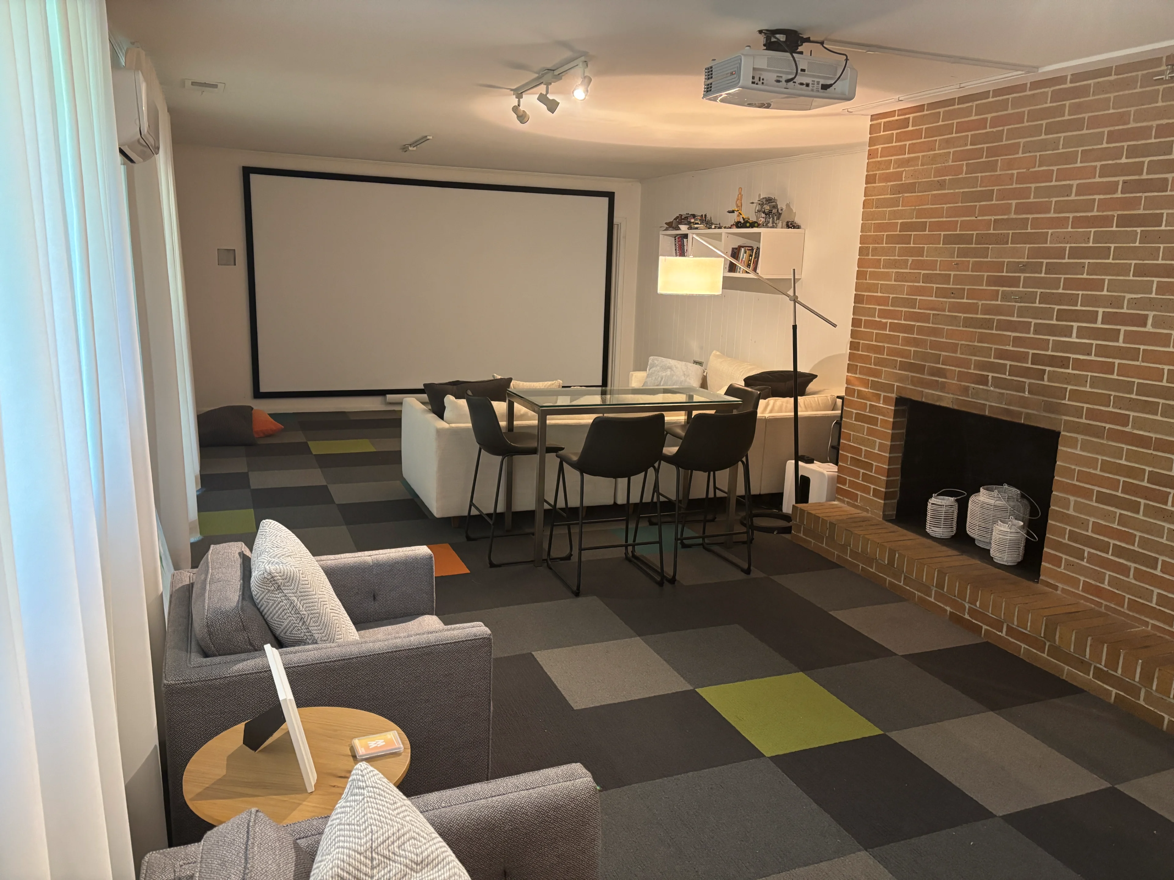 A portion of the large daylight basement was converted into a media screening room as well as a playroom/gameroom for the family's children and their friends to enjoy: